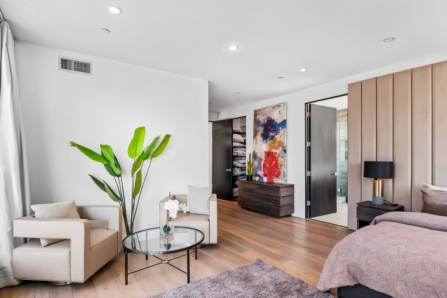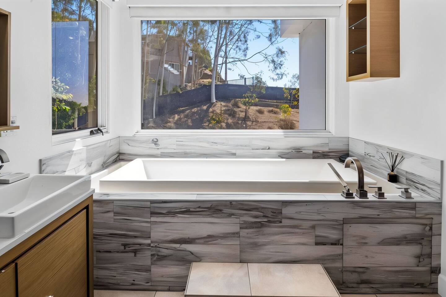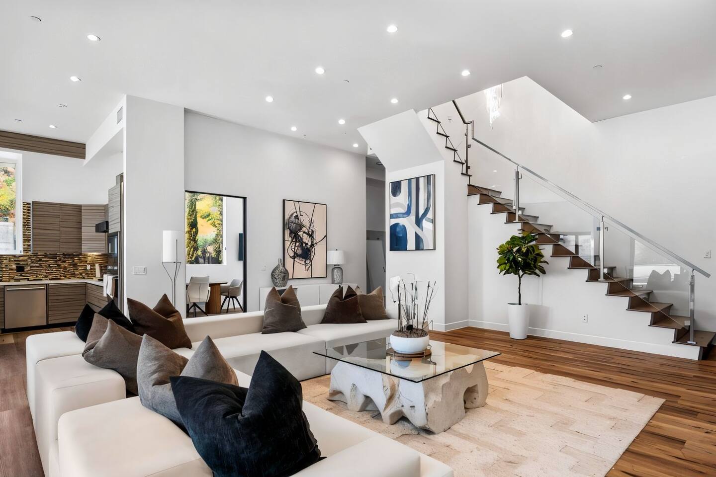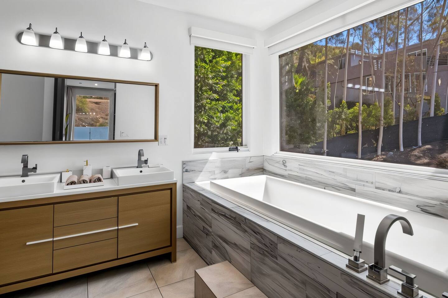Welcome to Hill House, a fully furnished luxury mansion in the iconic Hollywood Hills, just minutes from West Hollywood, the Sunset Strip, Beverly Hills, and Runyon Canyon. This private 4,000 sq ft hillside estate is designed for extended stays and executive living in Los Angeles. With panoramic mountain views, a resort-style pool, and seamless indoor-outdoor flow, the home offers a refined environment ideal for relocation, entertainment industry housing, corporate stays, or families seeking a private monthly rental in an exclusive neighborhood. The Space The home features five total bedrooms thoughtfully arranged for comfort and flexibility: • Two primary king suites with ensuite bathrooms and hotel-quality linens • One additional ensuite queen bedroom • One queen guest bedroom • One bonus room staged as a study, lounge, or optional twin bedroom — perfect for remote work, children, or extended guest use The main living area is filled with natural light and opens to a private balcony with hillside views. A fully equipped chef’s kitchen and formal dining space make long-term living effortless and comfortable. Step outside to your private pool and sun deck, complete with a natural rock waterfall feature and surrounding mountain views — a peaceful retreat above the city. Amenities • High-speed Wi-Fi • Smart TVs in primary bedrooms and living areas • Central air conditioning and heating • Washer and dryer • Driveway parking for two vehicles • Free street parking (no permit required) • Garage used for storage (no vehicle parking) Stay Details This is a 31+ night minimum stay property in compliance with Los Angeles regulations. The home is located in a quiet residential neighborhood and is best suited for responsible guests seeking privacy and comfort for an extended stay. • No parties or events • Quiet hours begin at 9 PM • Light guest reset requested at checkout • Professionally cleaned between each reservation If you’re searching for a Hollywood Hills furnished rental, luxury monthly stay in Los Angeles, or an executive home near the Sunset Strip, Hill House offers space, privacy, and elevated living in one of LA’s most desirable hillside communities.